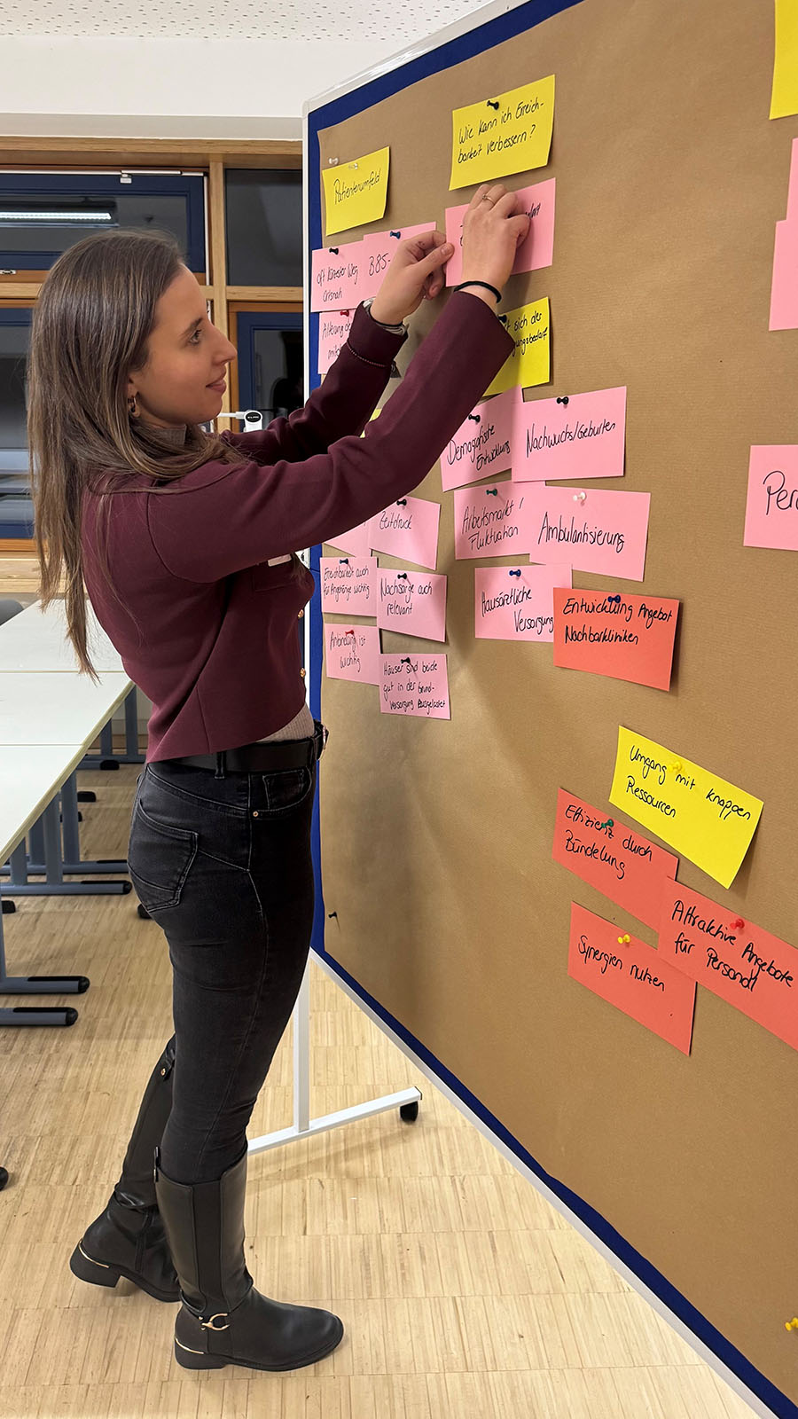 Mike Angelkorte, Vivian Hölzner und Claudia Schmitz vom Institute for Health Care Business (HCB) diskutierten mit den Bürgern in Kleingruppen die Ergebnisse des Strukturgutachtens im Rahmen der „Gesundheitsstrategie ARBERLANDKliniken 2035“. Dieses wurde vom Landkreis im April 2025 frühzeitig in Auftrag gegeben, um weiterhin Förderungen bei Investitionen in die Krankenhausinfrastruktur durch den Freistaat zu erhalten. Das Gutachten analysiert Szenarien für künftige stationäre sowie ambulante Angebote. Ziel ist die Entwicklung eines Konzepts zum Erhalt und der Stärkung einer qualitativ hochwertigen und wohnortnahen medizinischen Versorgung im ländlichen Raum. Vornehmlich berücksichtigt wurden dabei die medizinische Versorgungsqualität im Landkreis Regen, das Maß der Zukunftsfähigkeit und die Wirtschaftlichkeit.